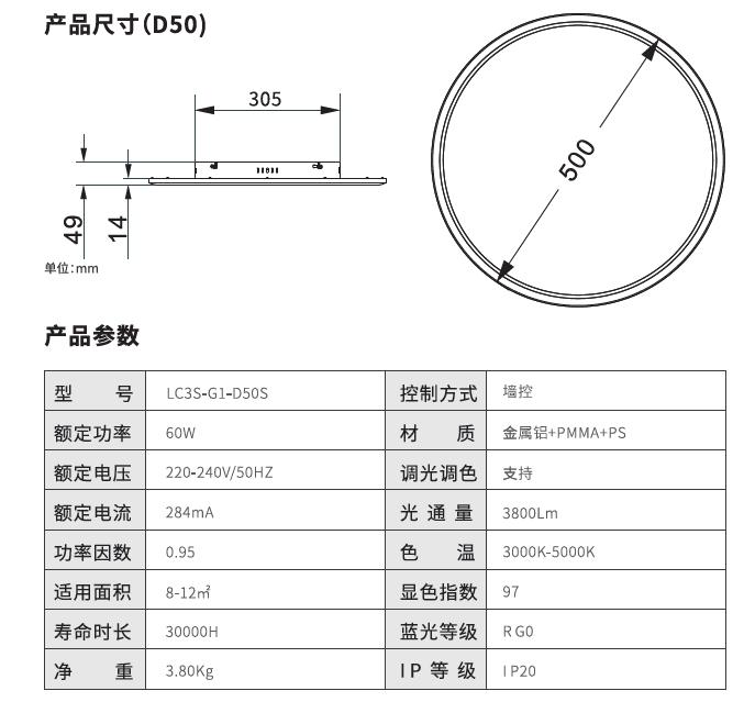 C2护眼吸顶灯-圆形D50-M版光通量>3800lm